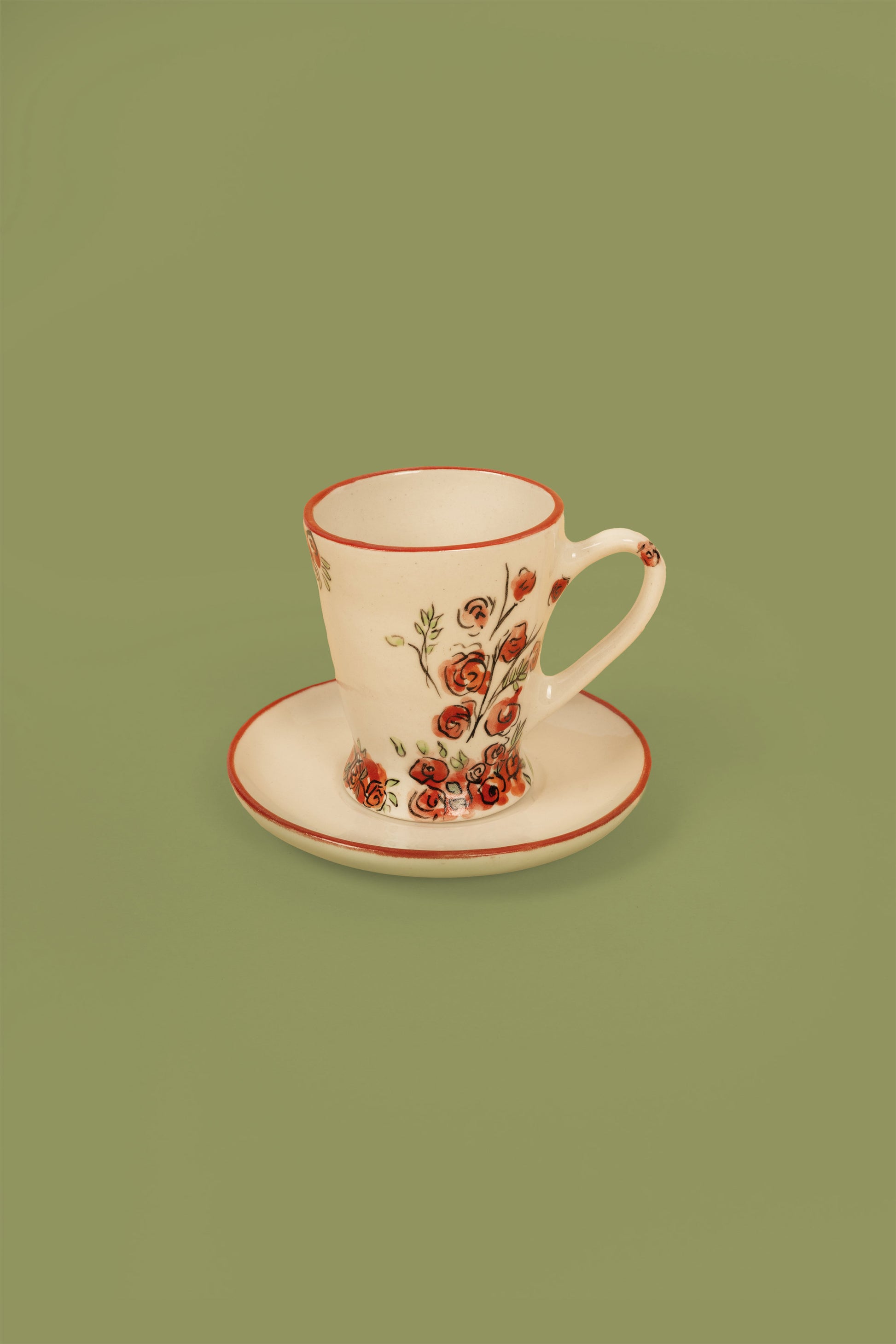 This handcrafted coffee pair, part of the Kutaisi Roses collection, celebrates Rezo Gabriadze’s iconic rose motif. The elegant design brings a touch of artistry to your coffee rituals, blending functionality with beauty. This set consists of a cup and a plate.