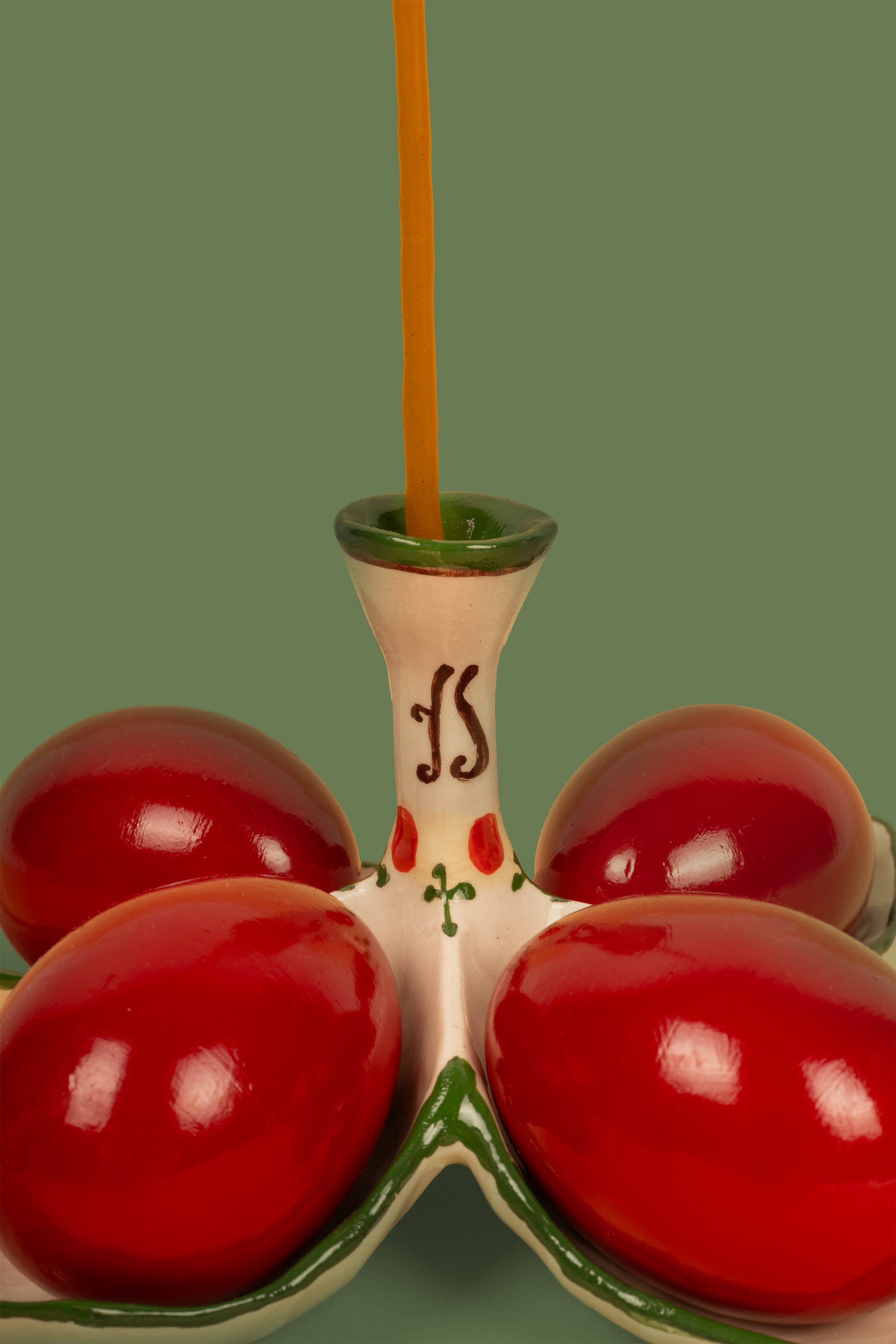 A versatile rack from our "Easter" collection, crafted to hold both eggs and candle. Its thoughtful design and warm, seasonal character make it a natural addition to any festive table.