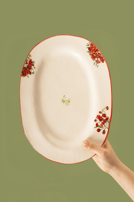 This large bowl from the Kutaisi Roses collection is perfect for entertaining or displaying. Handcrafted with intricate rose patterns, it makes a bold artistic statement.