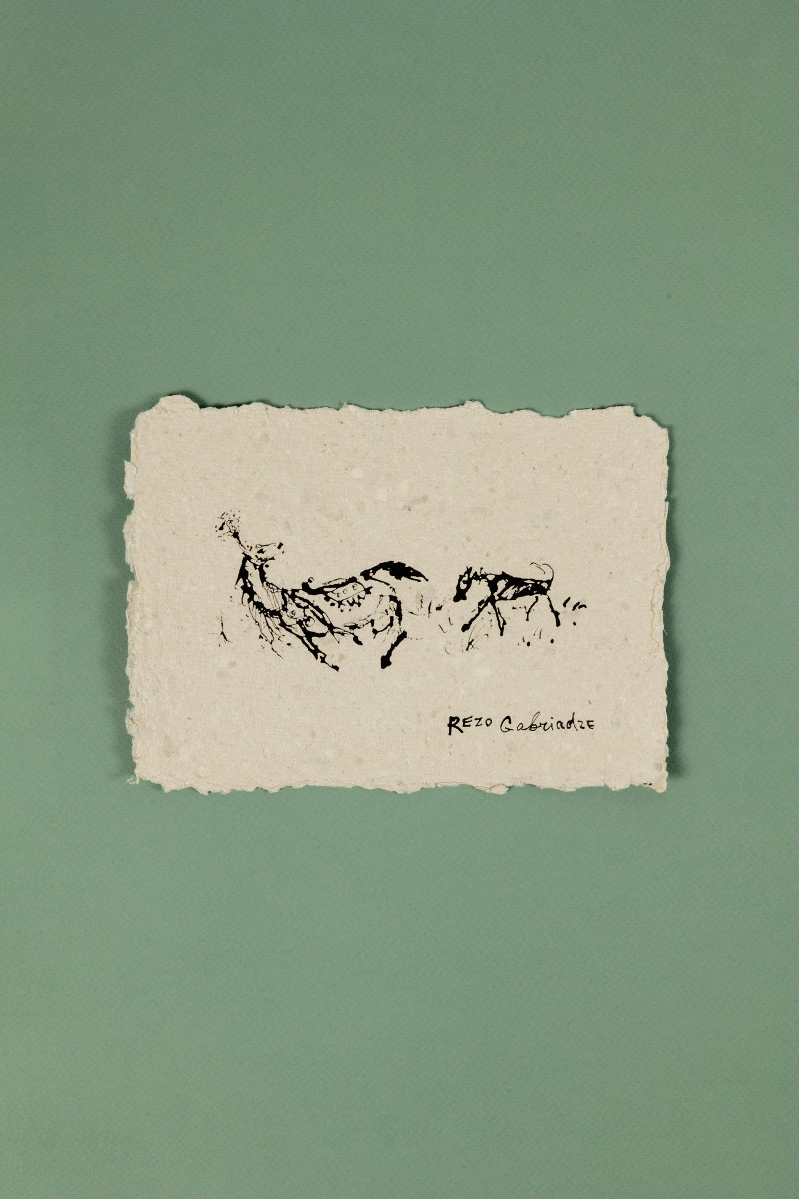This postcard features a sketch from the play Stalingrad, capturing Gabriadze’s poetic vision.