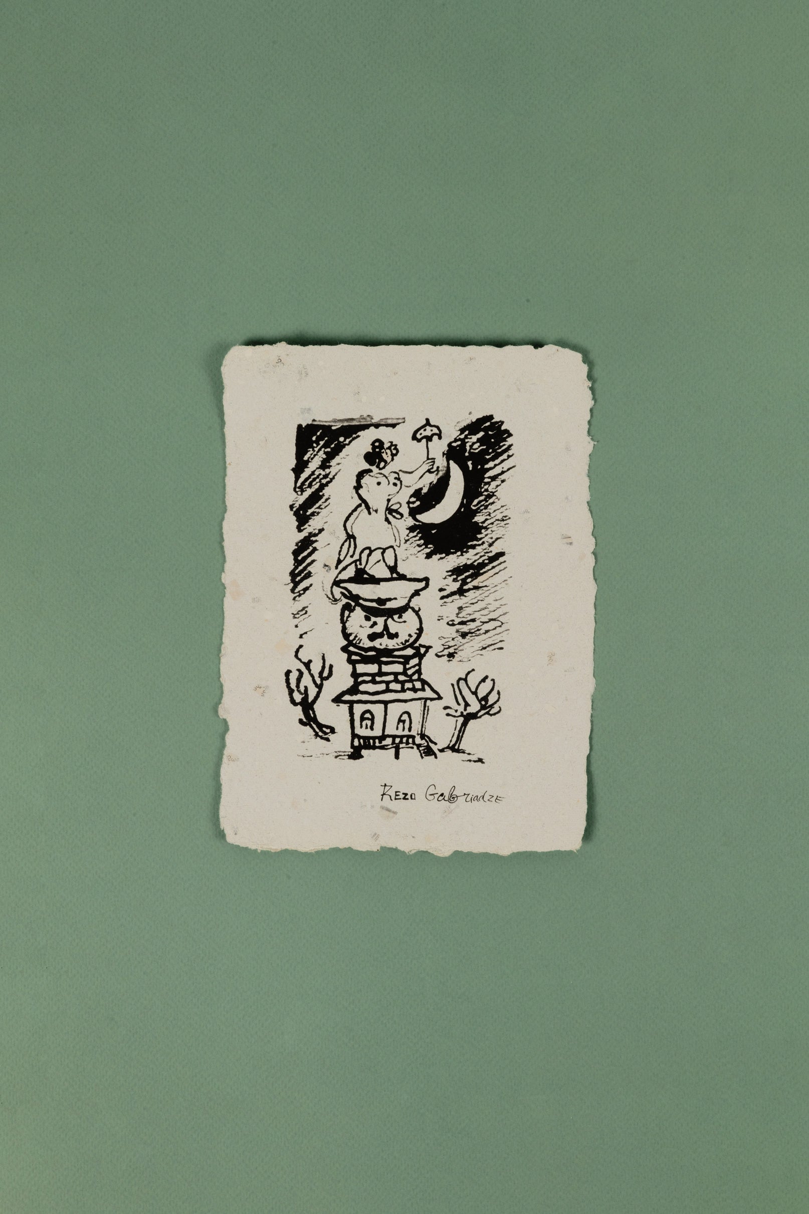 Featuring Gabriadze’s sketch from The Eccentrics, this postcard conveys the play’s humor and atmosphere.